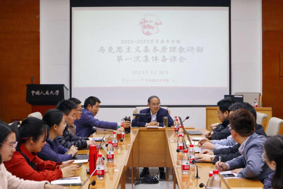 ▲中國人民大學(xué)舉辦《習(xí)近平新時(shí)代中國特色社會主義思想概論》集體備課會,黨委書記張東剛領(lǐng)銜備課。