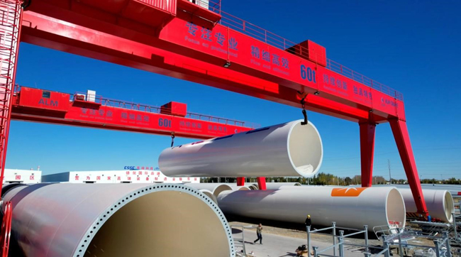 蒙東(通遼)風(fēng)電裝備制造產(chǎn)業(yè)基地內(nèi),一排排風(fēng)葉和塔筒即將運(yùn)往全國各地。林林?jǐn)z