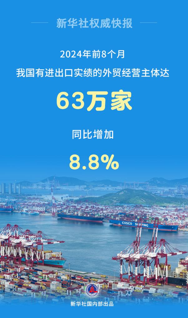 海關(guān)總署發(fā)布2024年前8個月外貿(mào)數(shù)據(jù)