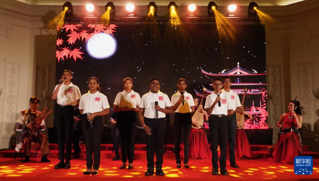 9月16日,在斯里蘭卡首都科倫坡,斯里蘭卡中學生在“天涯共此時-中秋詩會”活動上表演。新華社記者 伍岳 攝