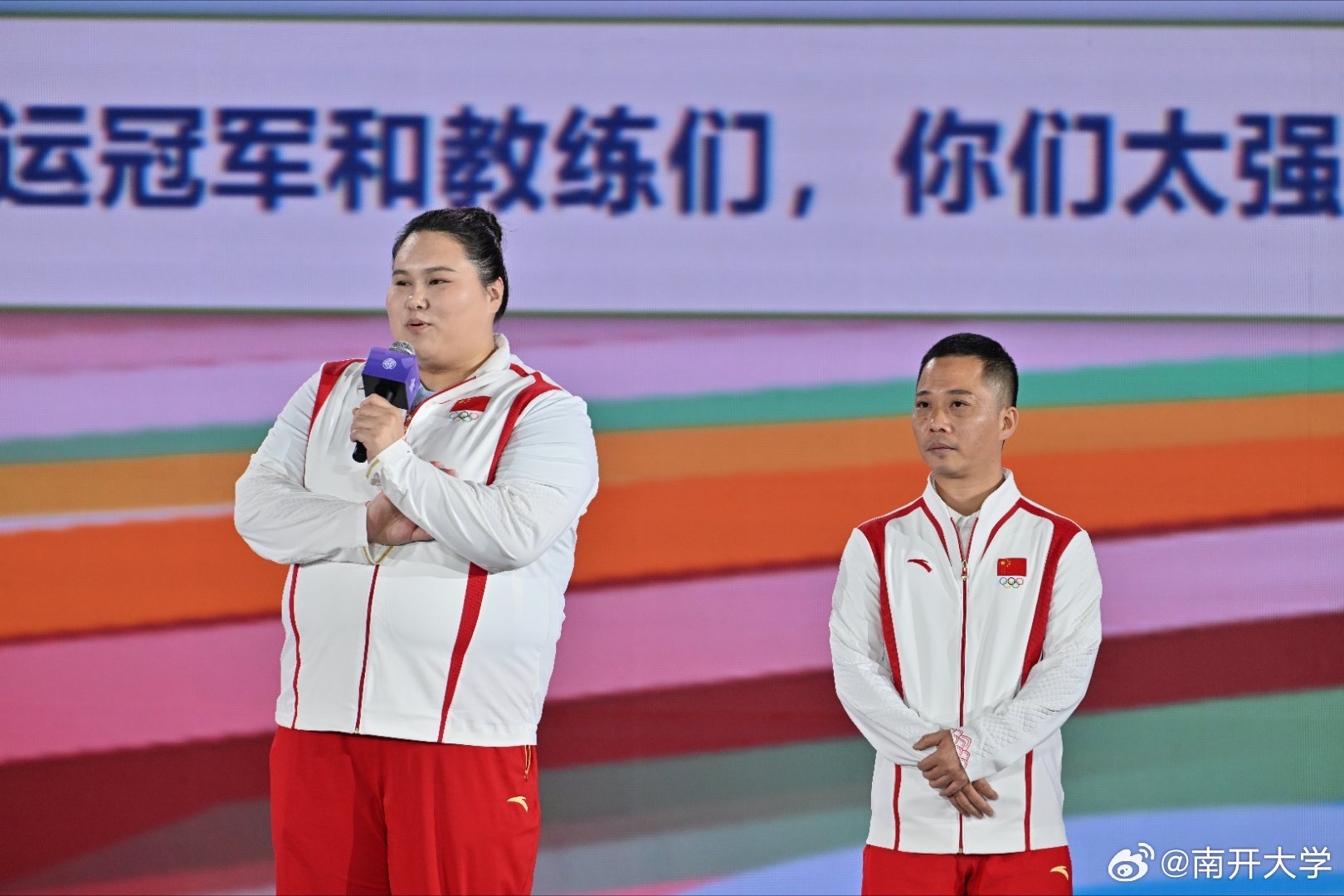 舉重運(yùn)動(dòng)員李雯雯和她的教練吳美錦。@南開(kāi)大學(xué) 圖
