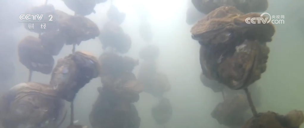 通過(guò)水下鏡頭可以看到,蠔苗被放下去的時(shí)候就固定在了水泥石餅上,每串石餅大約固著有40個(gè)。養(yǎng)殖戶(hù)們說(shuō),這種吊樣的方式不僅讓生蠔長(zhǎng)得好,還能方便捕撈。像1.6畝大小的蠔排可以吊養(yǎng)蠔苗大概1.2萬(wàn)串,整個(gè)基地蠔苗的年產(chǎn)量達(dá)13.45萬(wàn)噸。