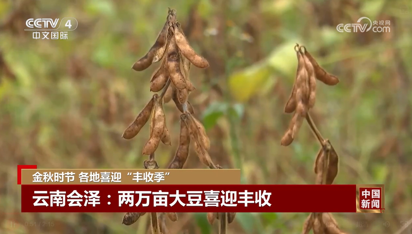 在烏蒙山間的云南會澤縣,兩萬多畝大豆喜迎豐收。在當?shù)氐拇蠖狗N植示范區(qū)里,金黃的豆葉匯聚成一片金色海洋,飽滿圓潤的大豆莢掛滿枝頭。