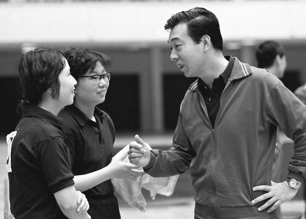 這是張燮林(右)在第35屆世界乒乓球錦標(biāo)賽女子雙打比賽中指導(dǎo)葛新愛、閻桂麗(資料照片)。新華社記者 胡偉 攝