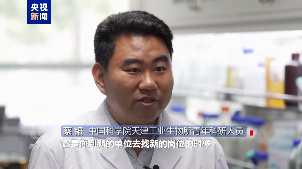 中國科學院天津工業(yè)生物所青年科研人員 蔡韜:這個課題極大概率可能是失敗的。你一段時間如果沒有很好的成果積累的話,不管是我們原單位的考核,還是你到新的單位去找新的崗位的時候,都會面臨非常大的問題和挑戰(zhàn)。