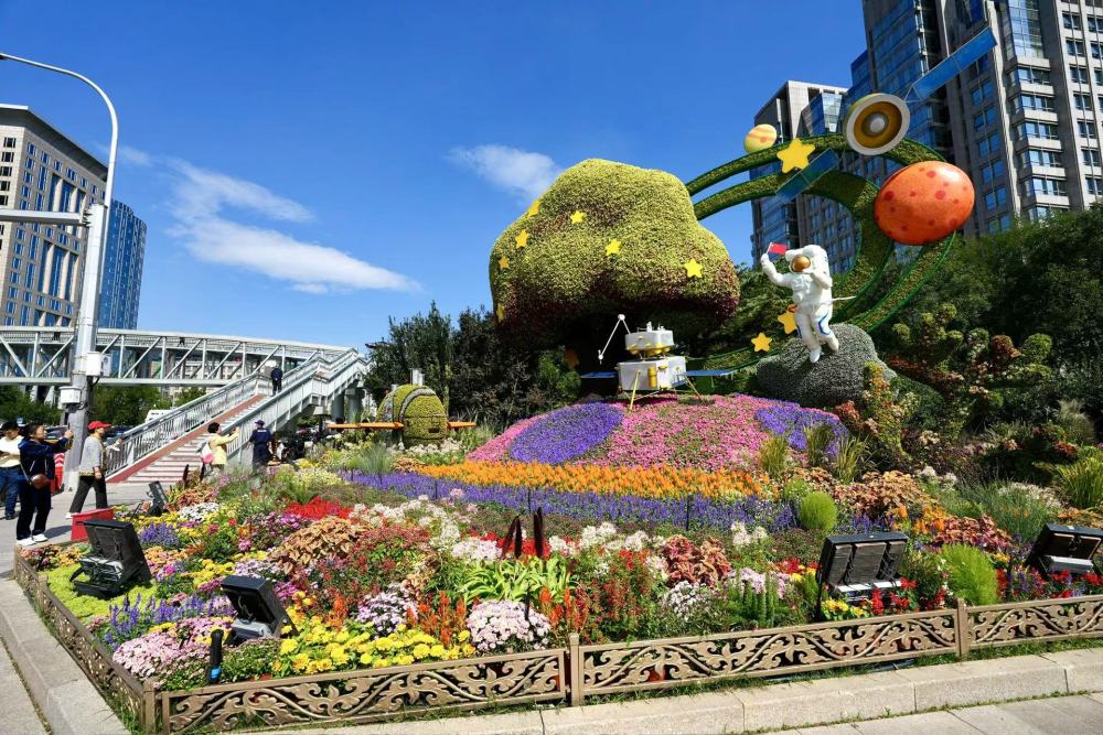 在天安門廣場和長安街沿線邂逅花壇,是無數(shù)人國慶游的“打開方式”。9月25日,“祝福祖國”巨型花籃亮相天安門廣場中心,10組立體花壇扮靚長安街沿線。