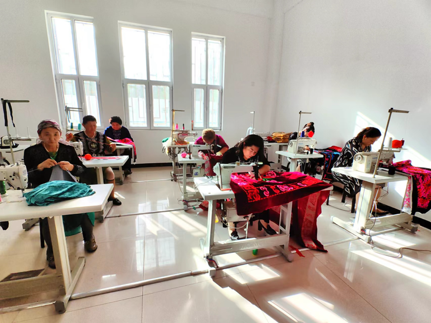 托云牧場積極鞏固政策支持,集中力量打造項(xiàng)目驅(qū)動(dòng),有效推進(jìn)地方產(chǎn)業(yè)集群的全面發(fā)展,實(shí)現(xiàn)經(jīng)營集約化與產(chǎn)業(yè)高效整合。2015年,由牧場“刺繡巧匠”吐孔·沙熱牽頭并成功注冊(cè)了“托云牧場帕米爾刺繡”合作社。到了2019年,牧場成功申請(qǐng)到160萬元援疆資金,用于建設(shè)新的手工刺繡產(chǎn)品生產(chǎn)基地。在吐孔·沙熱的帶動(dòng)下,合作社目前擁有60名成員,其中43名技藝嫻熟的繡工,年總收入攀升至三十萬。該合作社通過直銷、與克州百來思服裝店的業(yè)務(wù)合作,以及接受附近學(xué)校的校服訂單等多種渠道,將其生產(chǎn)的床品、家居布藝、女性服裝及校服推向阿圖什市、烏恰縣等地區(qū)市場。