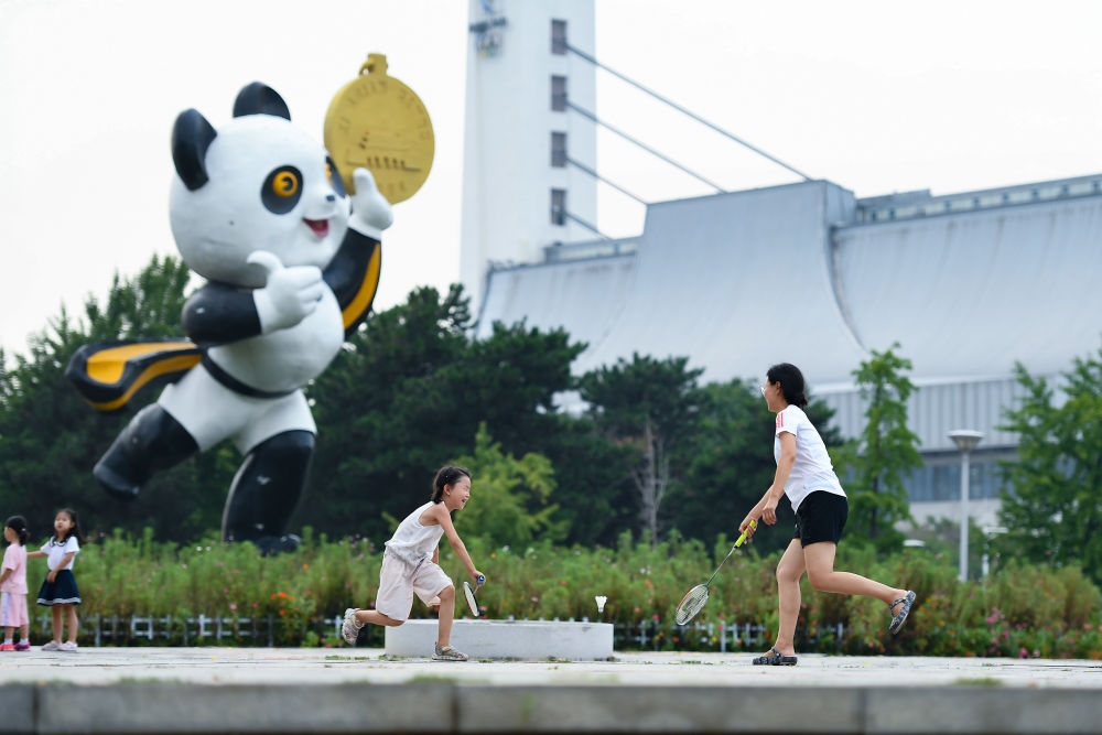 2023年8月20日,市民在位于北京的國家奧林匹克體育中心小廣場上打羽毛球。國家奧林匹克體育中心是我國第一個承辦大型綜合性國際體育賽事的體育場館群,為1990年北京亞運(yùn)會而建。新華社記者 陳鐘昊 攝