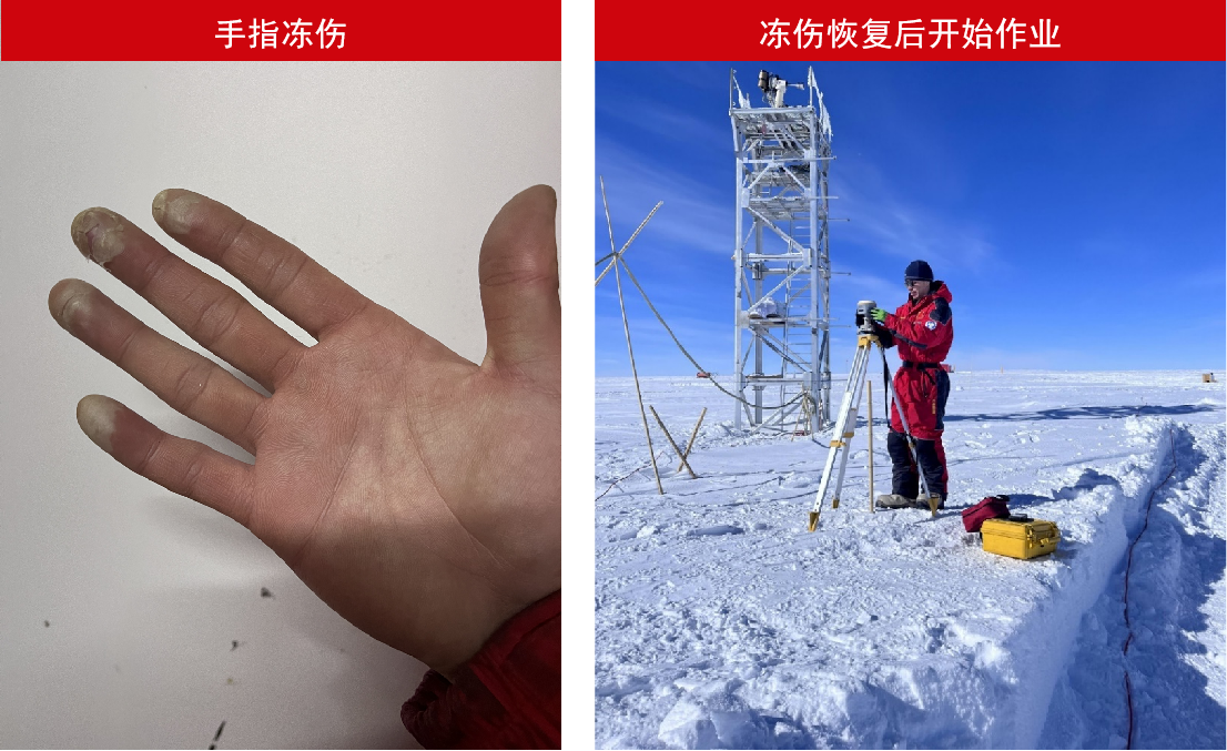 真正到了南極,他也親身體會(huì)了這些生死挑戰(zhàn)。在剛剛抵達(dá)昆侖站開展作業(yè)的過程中,因?yàn)樾枰c(diǎn)觸手機(jī)屏幕,不能穿戴厚手套,超過零下30度的極寒凍傷了他的手指,隨隊(duì)醫(yī)生診斷說再嚴(yán)重下去可能會(huì)有截肢的風(fēng)險(xiǎn)?!拔译y道我就這樣無法完成這次的任務(wù)了嗎?”在耿通強(qiáng)烈地請(qǐng)求下,醫(yī)生為他做了引流治療,傷情才得以好轉(zhuǎn)。而他也未等手指恢復(fù),便投入到緊張的科研工作中。