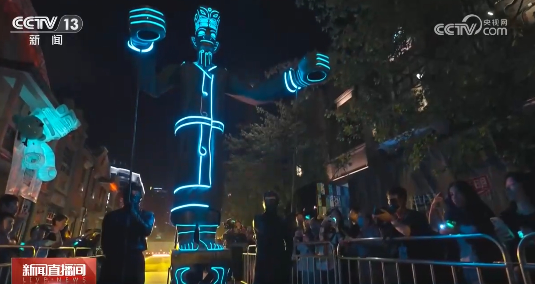 在上海張園,“三星堆奇幻嘉年華”讓夜游上海有了新去處。以三星堆文化中的文物為原型,一系列的互動巡游裝置搭配光影效果,氛圍感拉滿。