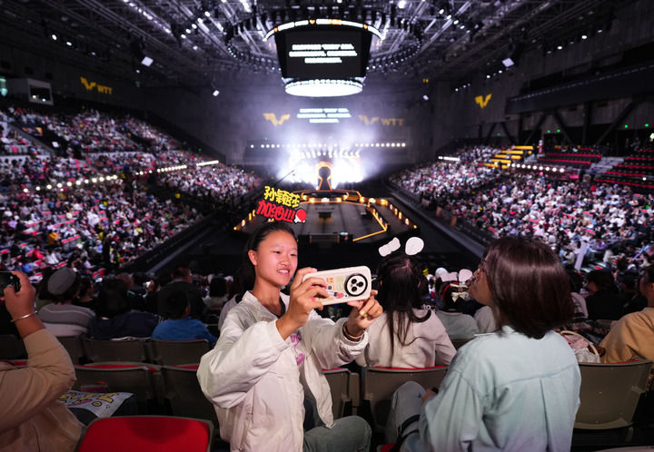 10月3日,觀(guān)眾來(lái)到首鋼園區(qū)觀(guān)看世界乒乓球職業(yè)大聯(lián)盟(WTT)中國(guó)大滿(mǎn)貫賽。新華社記者 張晨霖 攝