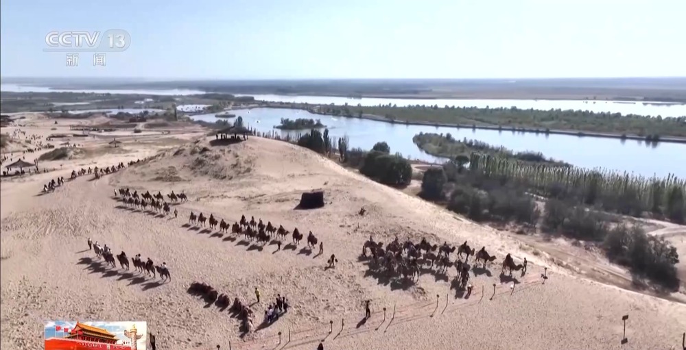 總臺記者 朱達(dá):寧夏銀川市黃沙古渡景區(qū)以一處千年古渡命名,匯集了黃河、沙漠、湖泊、濕地和田園等多種自然風(fēng)光。十一期間全國各地的游客來到黃沙古渡, 一方面可以欣賞大漠風(fēng)光、感受黃河文化 ,另一方面可以體驗騎駱駝、沙漠沖浪和飛索等多種項目。