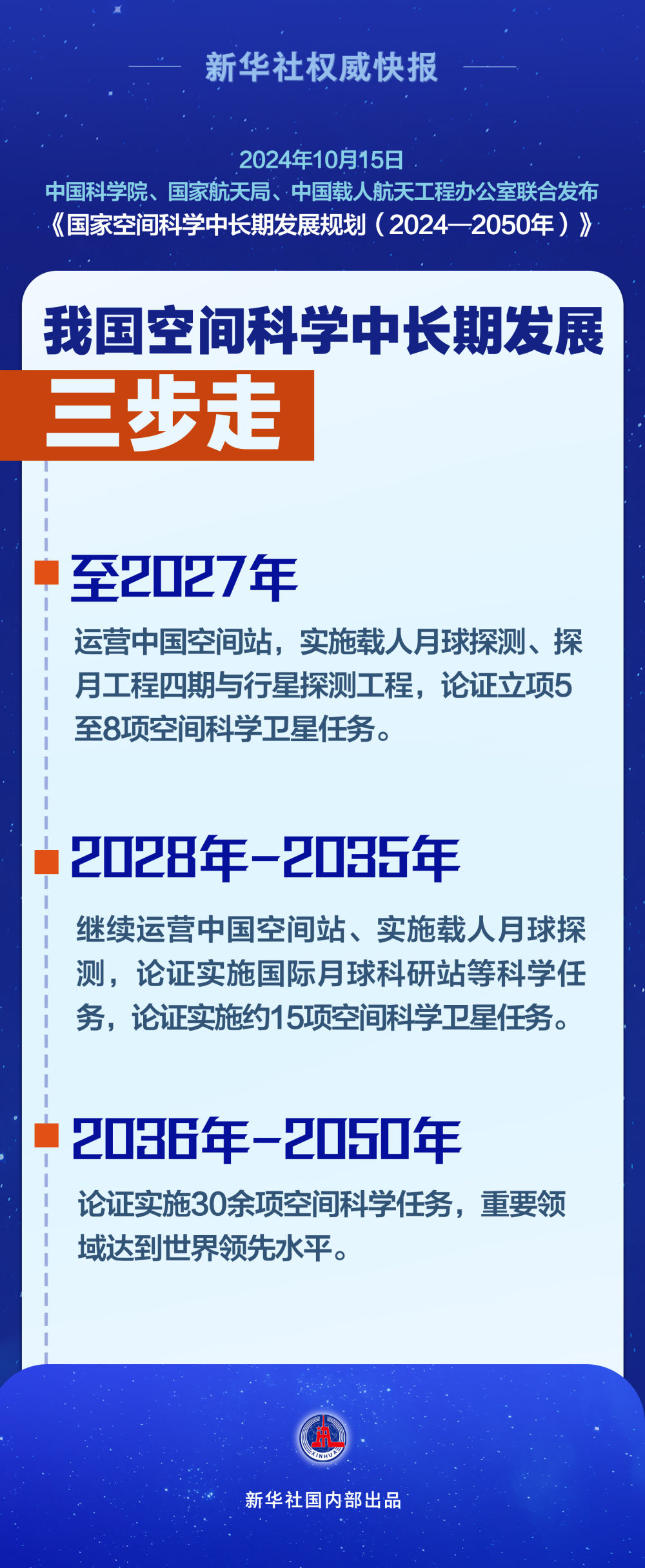 中國科學(xué)院、國家航天局、中國載人航天工程辦公室10月15日聯(lián)合發(fā)布《國家空間科學(xué)中長期發(fā)展規(guī)劃(2024—2050年)》。