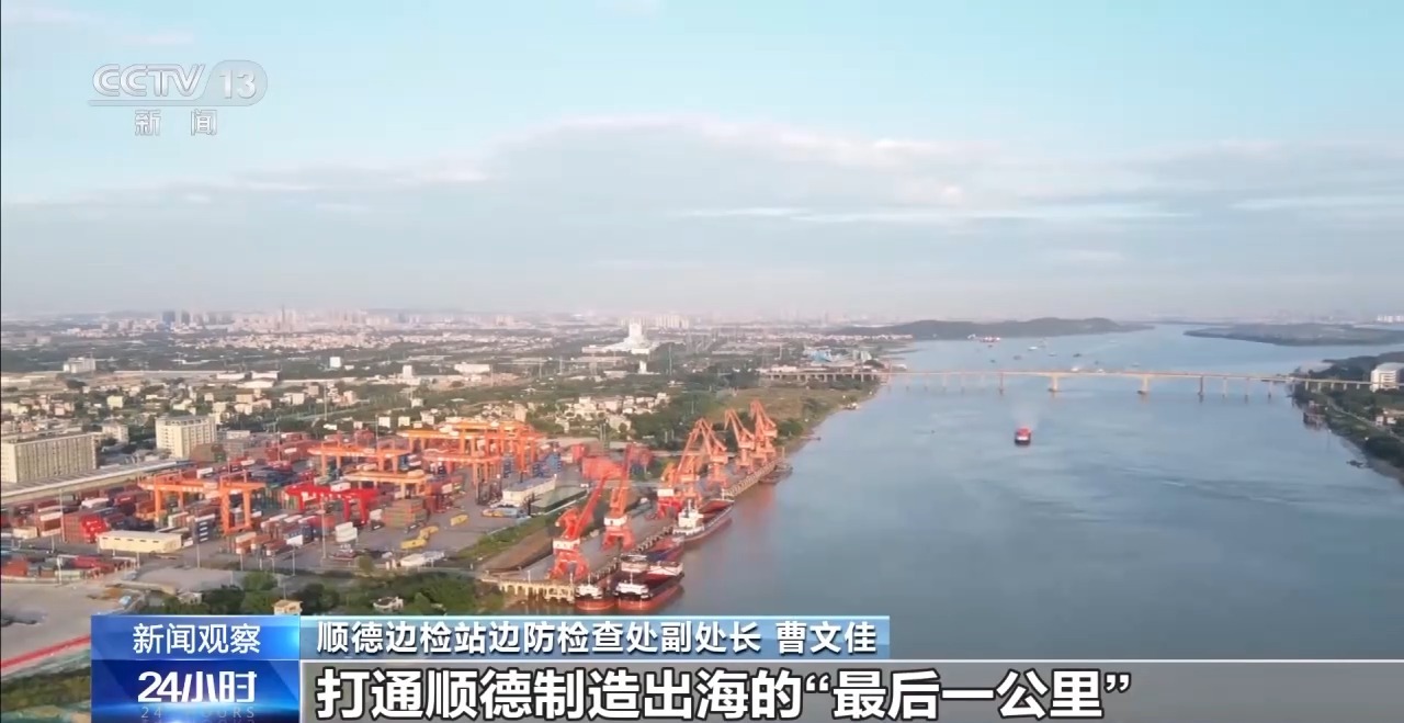 順德邊檢站邊防檢查處副處長 曹文佳:在順德區(qū)4個貨運(yùn)碼頭,對載運(yùn)駐地企業(yè)成交訂單的出入境船舶,實行船舶邊檢查驗“零待時”,一次辦妥出境手續(xù)就近出海,保障每天3000多個滿載“順德智造”電器產(chǎn)品的集裝箱,從走進(jìn)碼頭到裝船一路高效暢通,打通順德制造出海的“最后一公里”。