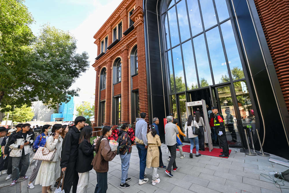 今年國慶假期,讀者排隊(duì)等待進(jìn)入位于天津意式風(fēng)情區(qū)的鐘書閣書店。新華社記者 孫凡越 攝