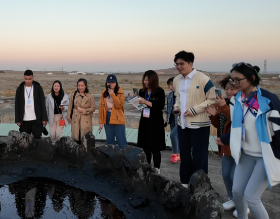 在黑油山最著名的景點——“跳跳泉油池”,黑油山景區(qū)講解員麥爾哈巴·肉扎洪帶領訪問團代表們利用壓力傳導作用,在它的周圍邊喊邊跳,眼見著它冒的泡泡越來越多,讓大家興奮不已。麥爾哈巴·肉扎洪說:“經過三代人的努力,克拉瑪依變成了現(xiàn)在這樣宜居宜業(yè)宜游的現(xiàn)代化高品質城市,希望可以把克拉瑪依艱苦創(chuàng)業(yè)的精神傳達給大家,也可以把這種活力傳達給大家。”