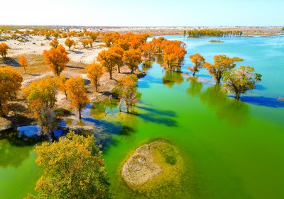尉犁縣羅布淖爾國家濕地公園的胡楊林景色。汪志鵬攝