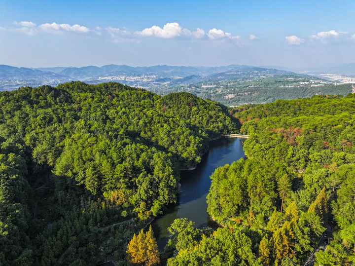 這是2024年10月15日在重慶市北碚區(qū)拍攝的縉云山國家級(jí)自然保護(hù)區(qū)景象(無人機(jī)照片)。新華社記者 王全超 攝