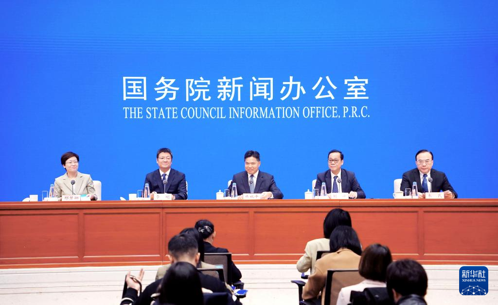 11月1日,國務院新聞辦公室在北京舉行新聞發(fā)布會,商務部副部長盛秋平、上海市人民政府副秘書長劉平、商務部市場運行和消費促進司司長李剛、上海市商務委員會主任朱民介紹中國國際消費中心城市有關消費月活動情況,并答記者問。新華社記者 潘旭 攝