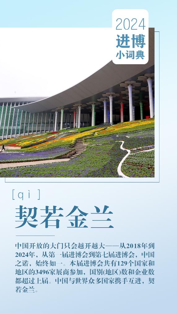 中國(guó)開放的大門只會(huì)越開越大——從2018年到2024年,從第一屆進(jìn)博會(huì)到第七屆進(jìn)博會(huì),中國(guó)之諾,始終如一。本屆進(jìn)博會(huì)共有129個(gè)國(guó)家和地區(qū)的3496家展商參加,國(guó)別(地區(qū))數(shù)和企業(yè)數(shù)都超過上屆。中國(guó)與世界眾多國(guó)家攜手互進(jìn),契若金蘭。