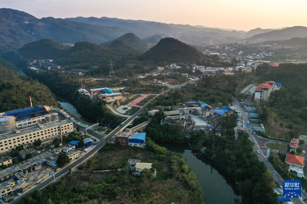 11月10日,252路公交車(chē)行駛在貴陽(yáng)市烏當(dāng)區(qū)水田鎮(zhèn)境內(nèi)(無(wú)人機(jī)照片)。