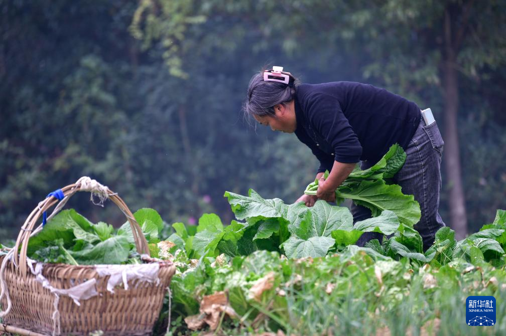貴陽(yáng)市烏當(dāng)區(qū)下壩鎮(zhèn)下壩村的村民在地里摘菜,準(zhǔn)備第二天進(jìn)城售賣(mài)(11月6日攝)。