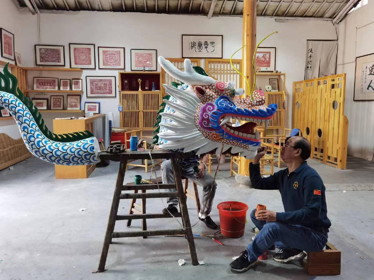 2002年,當(dāng)?shù)赜袀€(gè)村子要新做一條龍檔。這是黃德清自己獨(dú)立做的第一條龍檔。而今,他做的龍檔,有近30條?!艾F(xiàn)在不光是過年過節(jié)助興祈福,辦喜事也會(huì)拿出來舞一舞。”