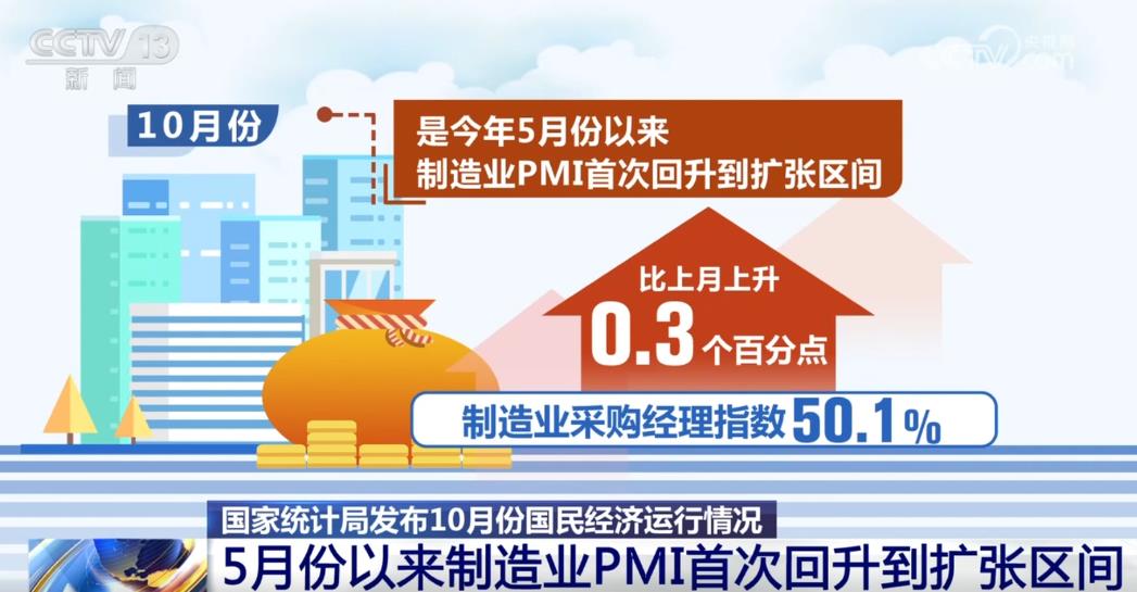 從經(jīng)營(yíng)主體預(yù)期看,10月份制造業(yè)采購(gòu)經(jīng)理指數(shù)為50.1%,比上月上升0.3個(gè)百分點(diǎn),是今年5月份以來(lái)制造業(yè)PMI首次回升到擴(kuò)張區(qū)間。從消費(fèi)者預(yù)期看,消費(fèi)者信心指數(shù)比上月回升1.2個(gè)百分點(diǎn),為連續(xù)六個(gè)月回落之后的首次回升。這些變化將極大激發(fā)市場(chǎng)活力,推動(dòng)經(jīng)濟(jì)回升向好。