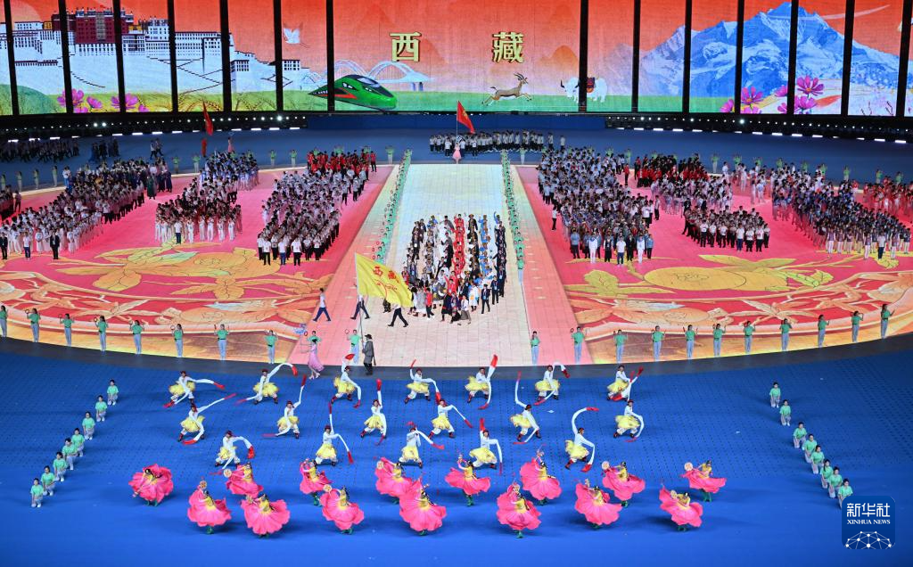 11月22日,西藏自治區(qū)代表團在開幕式上入場。