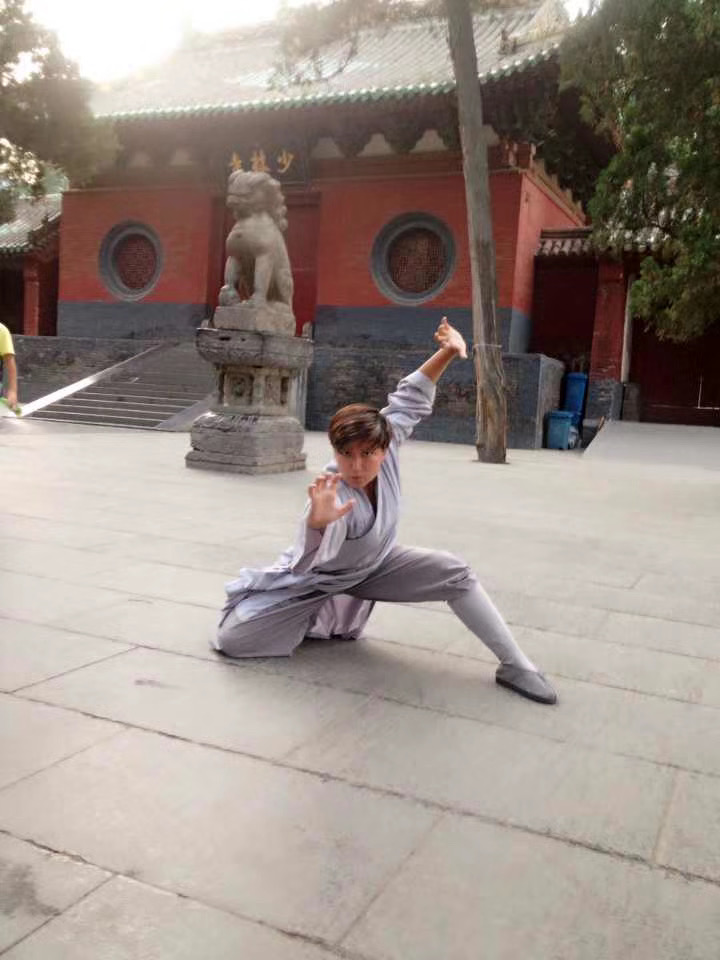地里娜爾在河南少林塔溝武校學習期間,在少林寺門口留影。受訪者供圖