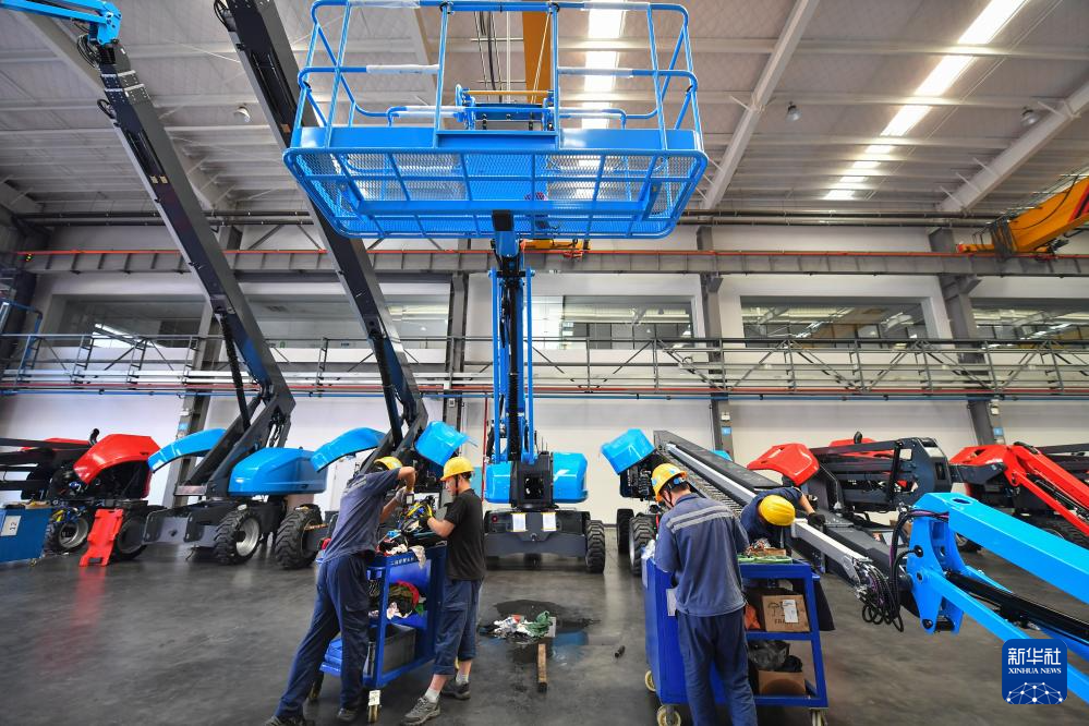工作人員在位于寧鄉(xiāng)市的湖南星邦智能裝備股份有限公司高空作業(yè)產(chǎn)品裝備車間作業(yè)(9月27日攝)。新華社記者 陳澤國 攝