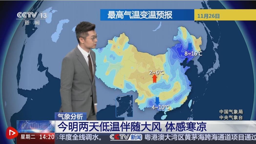 中國氣象局氣象分析師胡嘯表示,寒潮天氣過程將會在11月28日前后趨于結(jié)束,但是在結(jié)束之前仍要關(guān)注大風(fēng)降溫和強(qiáng)降雪天氣。26日早晨相比25日同一時刻,中東部大部地區(qū)氣溫已經(jīng)出現(xiàn)明顯的下降,體感寒涼。