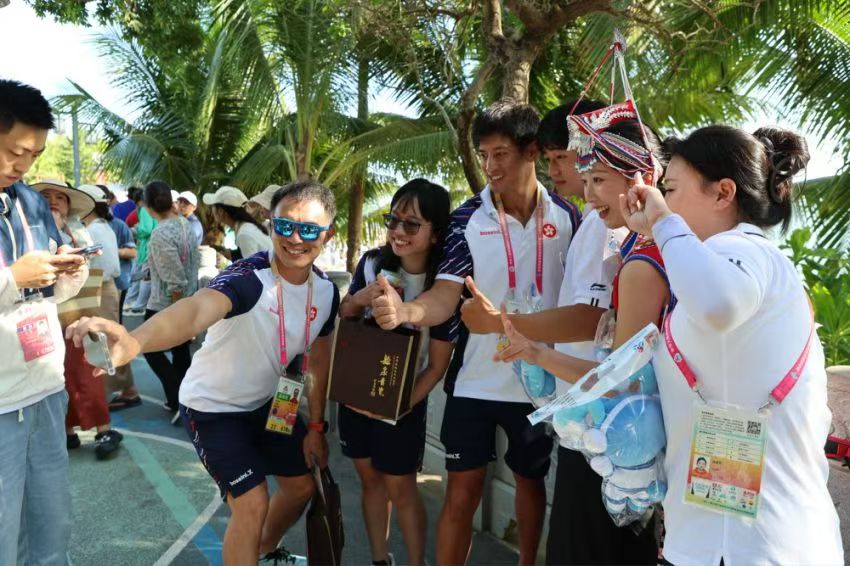 在運動會毽球場館,每支參賽隊伍都收到了香港代表團贈送的毽球掛飾或龍形胸針。西藏代表團的壯族小伙韋盛森計劃回贈具有壯族特色的“繡球”;而早就與香港運動員因毽球結緣的廣東隊老將孫麗艷則決定——等香港隊在圣誕節(jié)到廣東集訓時,她要給老朋友回贈實用的禮物。