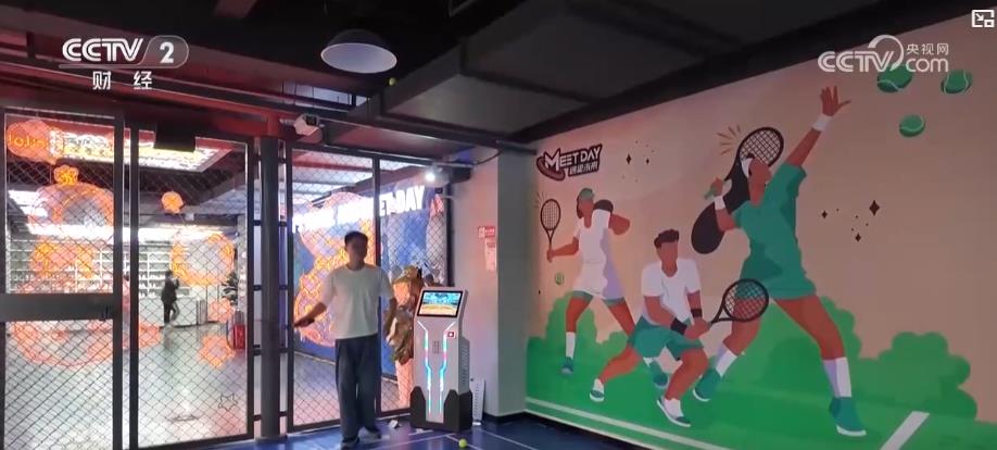 在四川成都的一家室內(nèi)綜合運動館,除了有保齡球、射擊等傳統(tǒng)項目,還有一些科技感十足的新體驗。在眼前這塊僅20多平方米的場地,通過發(fā)球機和紅外感應(yīng)技術(shù),可以模擬真實的網(wǎng)球擊球路線,給消費者帶來了全新的體驗。