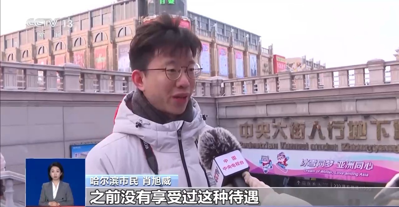 哈爾濱市民 肖旭威:我們作為本地人,雖然有時(shí)候會調(diào)侃,說“酸了”,之前沒有享受過這種待遇,但更多的是調(diào)侃。我們也希望這樣的措施多多落實(shí),讓外地的游客,在哈爾濱有更好的旅游體驗(yàn)。