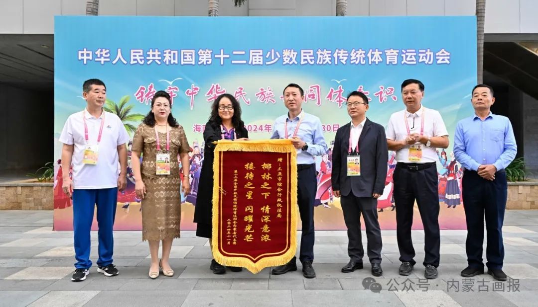 11月29日,隨著第十二屆全國少數(shù)民族傳統(tǒng)體育運(yùn)動會臨近尾聲,內(nèi)蒙古代表團(tuán)向第十二屆全國少數(shù)民族傳統(tǒng)體育運(yùn)動會執(zhí)行工作委員會、中共海南省委政法委員會、中國人民政治協(xié)商會議三亞市委員會等一對一接待及駐地保障單位贈送了錦旗,表達(dá)在本屆運(yùn)動會期間為內(nèi)蒙古代表團(tuán)提供周到服務(wù)的深切謝意。