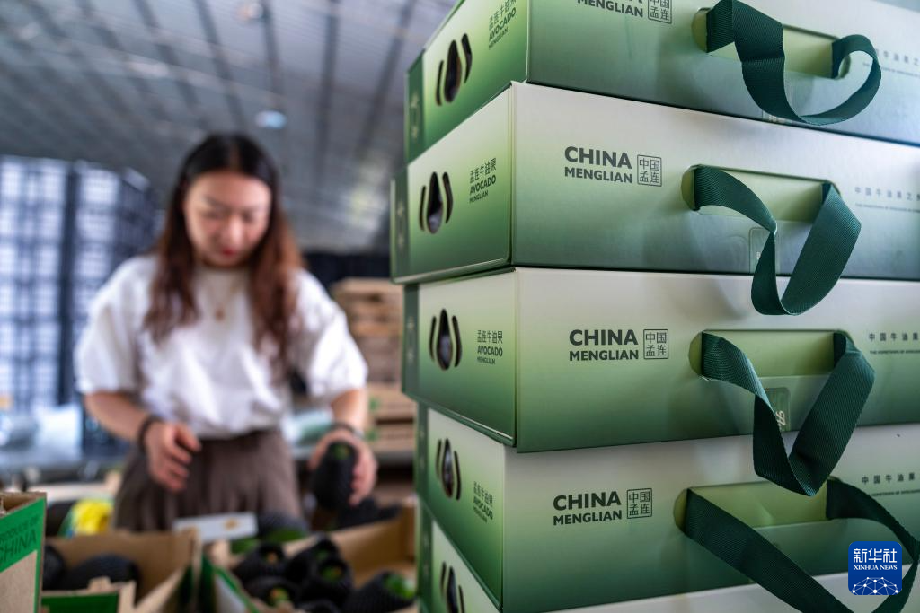 清洗、殺菌、拍照、稱重……在中國孟連牛油果集配中心,牛油果從分選傳輸帶對應品級的出口滾落,經(jīng)人工檢查分裝后無縫對接冷鏈貨運。