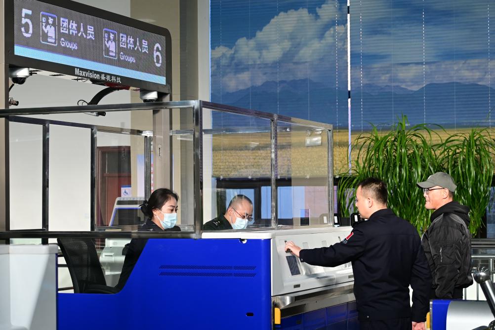 12月6日,旅客在巴克圖口岸聯(lián)檢大廳辦理出境手續(xù)。新華社記者 尹星宇 攝