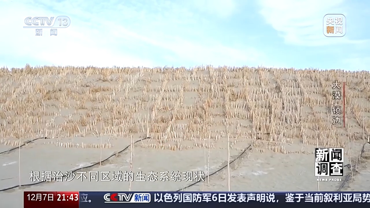新疆于田縣林業(yè)和草原局黨組書(shū)記、副局長(zhǎng) 賈存鵬:首先我們要到實(shí)地去勘測(cè),只要能有水的,我們?nèi)渴巧镏紊?,沒(méi)水的地方是草方格和高立式沙障治沙。