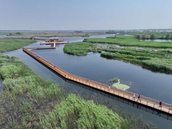 在中線,通過汛期洪水資源化利用,助力北方地區(qū)50多條河流生態(tài)復(fù)蘇。永定河、潮白河、滹沱河等一大批斷流多年的河流恢復(fù)全線通水,再現(xiàn)流動之美。世界上最大、最深的“漏斗區(qū)”華北地區(qū)地下水位實現(xiàn)總體回升?!叭A北明珠”白洋淀淀區(qū)面積擴大到近300平方公里,再現(xiàn)“荷塘葦海、鳥類天堂”勝景。