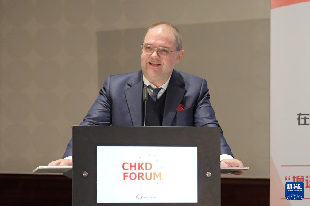 12月5日,德國(guó)聯(lián)邦勞動(dòng)及社會(huì)事務(wù)部國(guó)際勞動(dòng)及社會(huì)政策司司長(zhǎng)卡斯頓·施滕德爾在柏林舉行的德國(guó)中國(guó)商會(huì)2024年度論壇上發(fā)表講話。新華社記者 邰思聰 攝