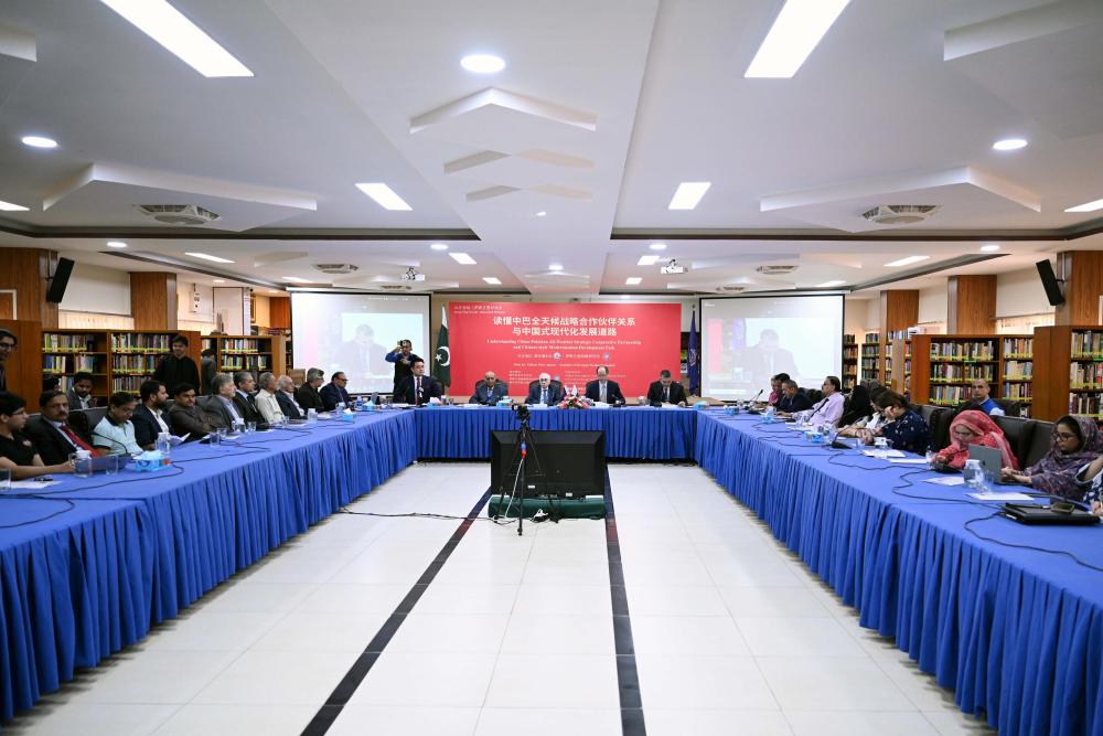 這是2024年10月18日在巴基斯坦首都伊斯蘭堡拍攝的“紅廳論壇·伊斯蘭堡對(duì)話會(huì)”活動(dòng)現(xiàn)場(chǎng)。新華社 艾哈邁德·卡邁勒 攝