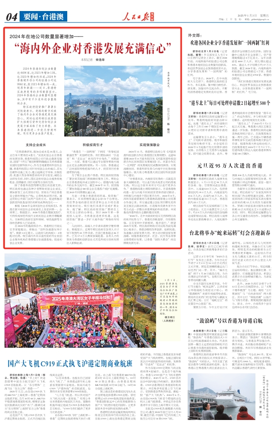“2024年,在中央政府的堅(jiān)實(shí)支持和特區(qū)政府的開(kāi)拓努力下,香港經(jīng)濟(jì)根基厚、市場(chǎng)韌性強(qiáng),正在變局中開(kāi)新格局、穩(wěn)步前行?!闭雇?025年發(fā)展,特區(qū)政府財(cái)政司司長(zhǎng)陳茂波充滿信心地表示,香港會(huì)繼續(xù)改革創(chuàng)新、搶抓機(jī)遇,加速融入國(guó)家發(fā)展大局,更主動(dòng)對(duì)接國(guó)家發(fā)展戰(zhàn)略,助推香港的經(jīng)濟(jì)、社會(huì)、民生等各項(xiàng)事業(yè)取得更好發(fā)展,讓香港“國(guó)際大都會(huì)”的品牌煥發(fā)新光彩。