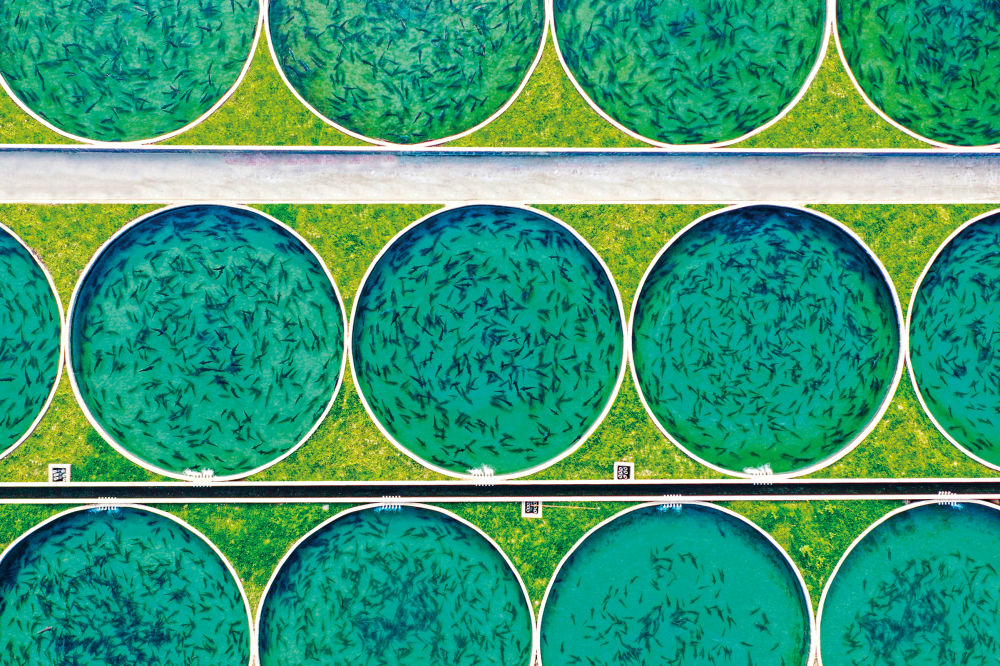 在四川省天全水產(chǎn)現(xiàn)代農(nóng)業(yè)園內(nèi),上百個圓形流水魚池依河而建。圖片由天全縣委宣傳部提供。