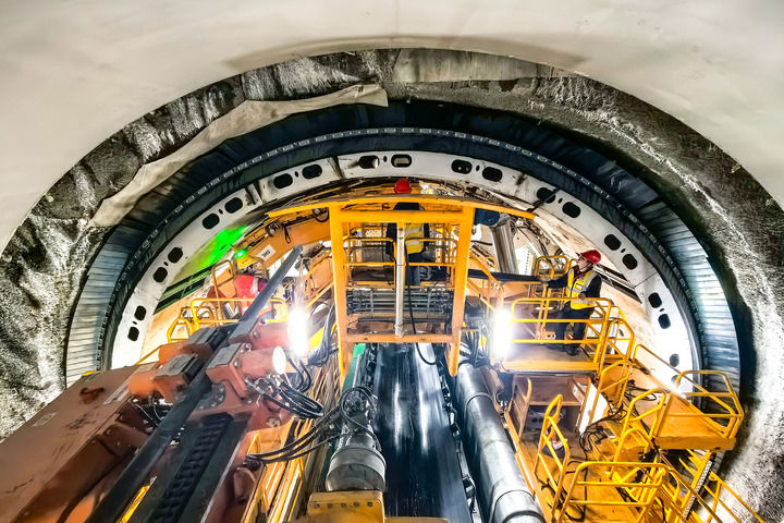 這是2025年1月5日拍攝的引江補(bǔ)漢工程首臺(tái)雙護(hù)盾硬巖掘進(jìn)機(jī)“江漢平安號(hào)”掘進(jìn)施工現(xiàn)場(chǎng)。新華社記者 肖藝九 攝