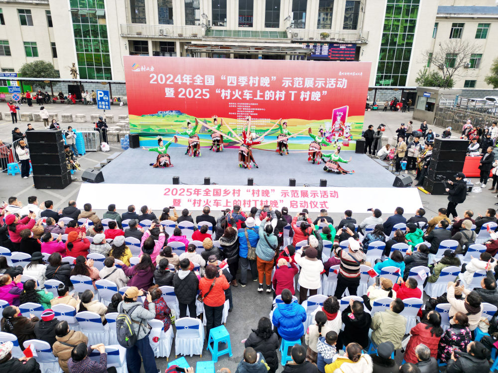 新鮮的農(nóng)產(chǎn)品、喜慶的車廂、特色的民族歌舞、精美的非遺展示……1月18日,2025年全國(guó)鄉(xiāng)村“村晚”示范展示活動(dòng)暨“村火車上的村T村晚”啟動(dòng)儀式,在貴陽(yáng)開往玉屏的5640次“慢火車”上舉行。