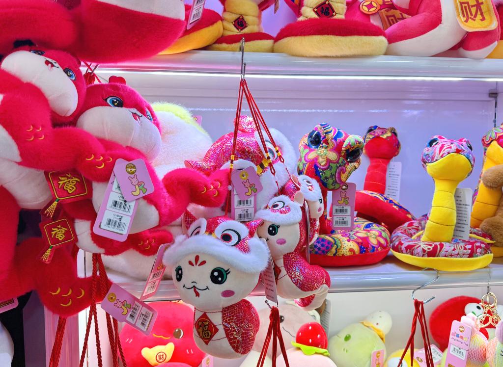 農(nóng)歷乙巳蛇年將至,結(jié)合生肖主題,陸慶榮與團(tuán)隊(duì)早在去年七、八月就敲定了三十多個(gè)品種的款式設(shè)計(jì),而十一月、十二月便是出貨銷售的高峰期,每天能賣出約兩萬只毛絨玩具。其中,“福寶蛇”和布藝蛇玩具是“人氣王”。
