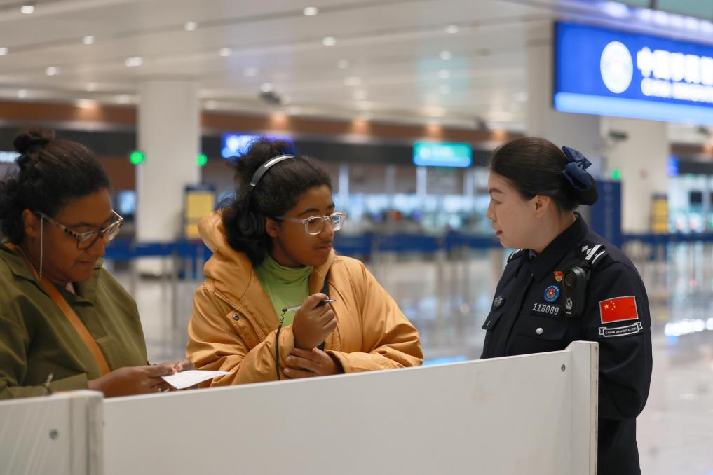 2024年12月17日起,過境免簽外國(guó)人停留時(shí)間延長(zhǎng)為240小時(shí)。大興機(jī)場(chǎng)邊檢站進(jìn)一步優(yōu)化提升通關(guān)體驗(yàn),率先實(shí)現(xiàn)同步辦理臨時(shí)入境許可、邊檢入境手續(xù)的“一站式”服務(wù),旅客無需二次排隊(duì)。
