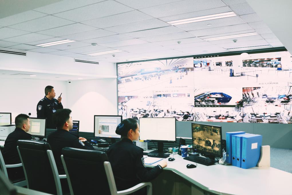指揮中心的大屏上,機(jī)場(chǎng)每個(gè)角落的現(xiàn)場(chǎng)視頻一目了然?!拔覀儠?huì)根據(jù)大屏觀察出入境現(xiàn)場(chǎng)人流量,及時(shí)優(yōu)化調(diào)配警力;適時(shí)介入各類案事件、協(xié)調(diào)聯(lián)絡(luò)機(jī)場(chǎng)相關(guān)部門給予協(xié)助,確保口岸始終處于平穩(wěn)、順暢的狀態(tài)。”大興機(jī)場(chǎng)邊檢站邊檢處處長(zhǎng)李欣說。