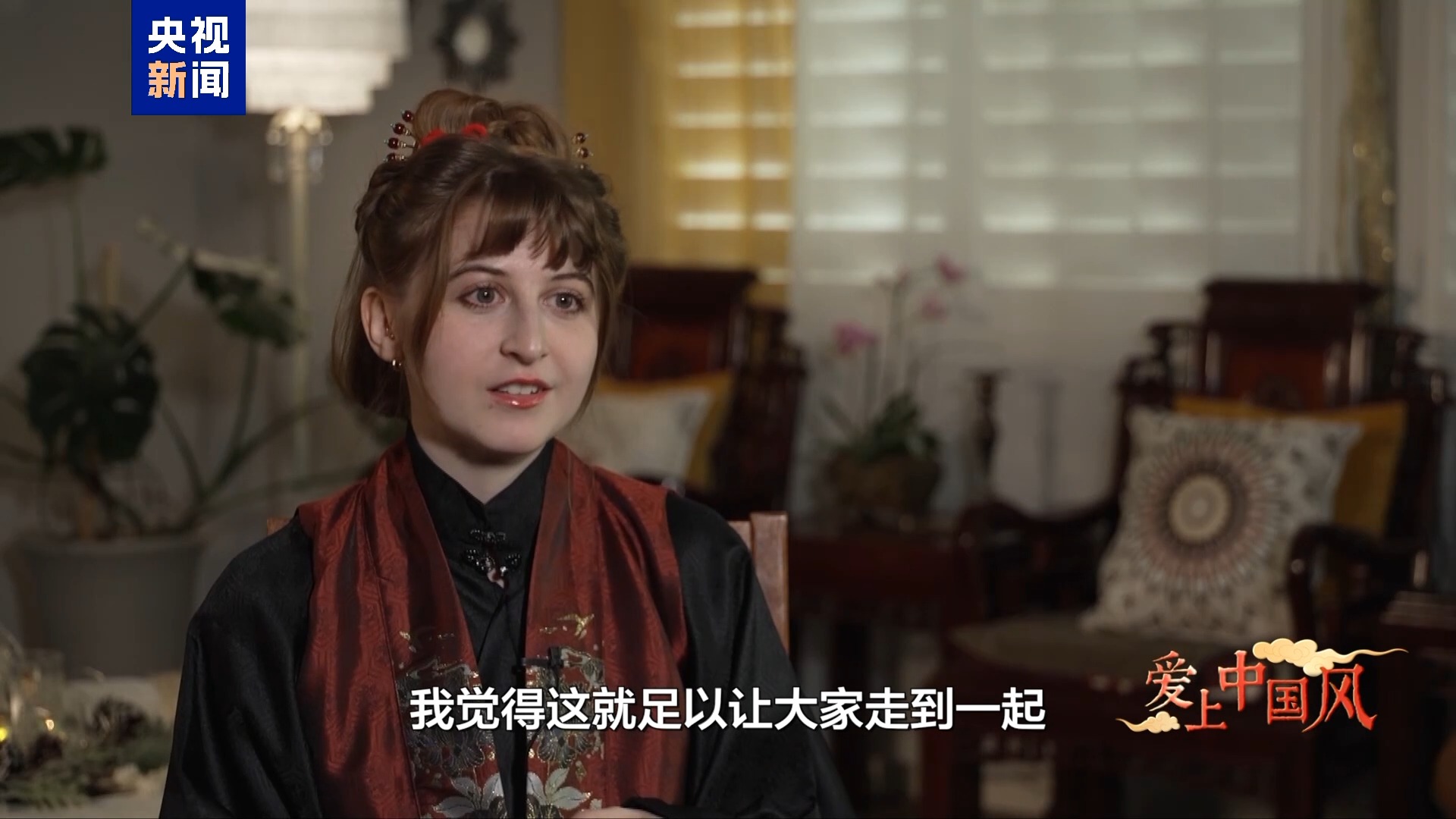 瑞秋:我在瀏覽網(wǎng)站的時候,我非常喜歡瀏覽時尚視頻,當時看到了一個關于中國漢服的視頻,我當時想這是什么?他們說,這是漢服的復興,年輕人正在把它帶回來。我覺得這太酷了。